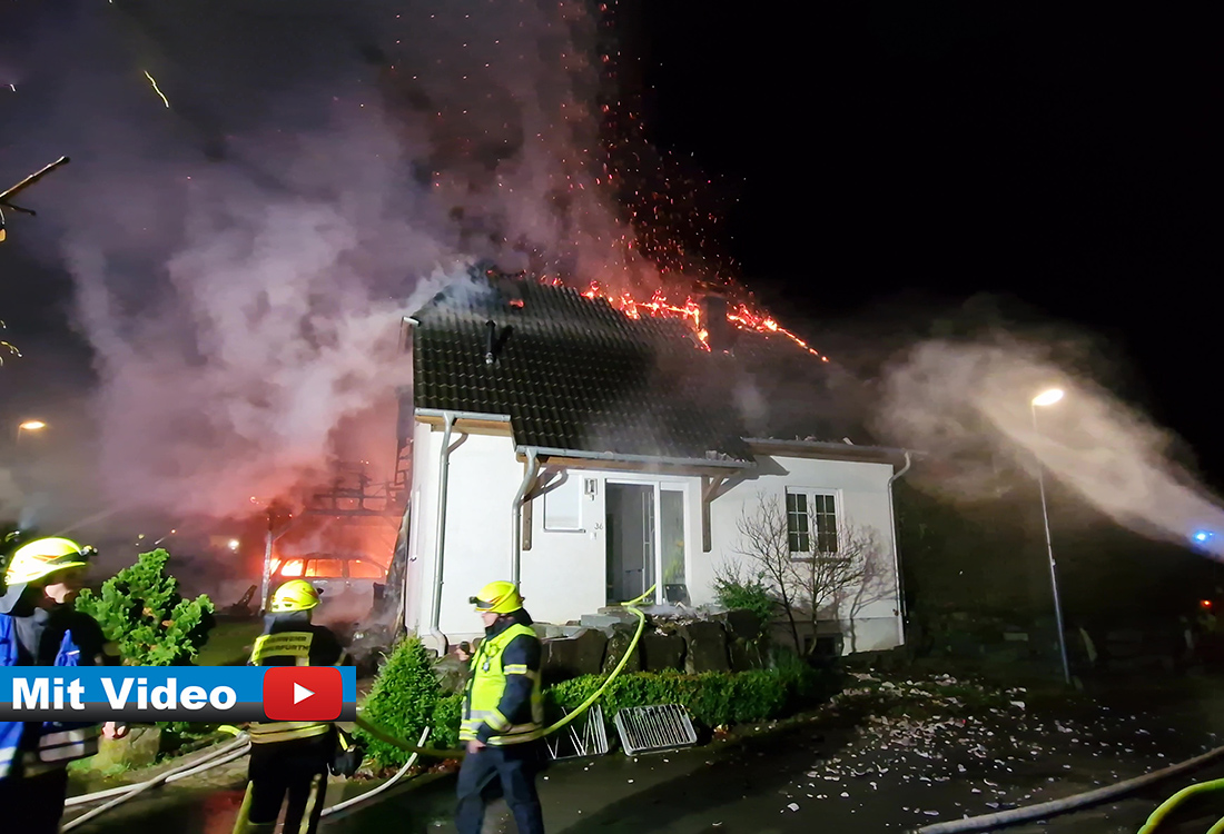 Wipperfürth – 150 Einsatzkräfte bekämpfen Flammen in einer Wohnsiedlung in Ohl – Feuer bricht in Carport aus und zerstört neben zwei Wohnhäusern auch drei Autos – Zehn Anwohner, darunter sechs Kinder, können sich rechtzeitig in Sicherheit bringen - Unterkunft für Familie gefunden (AKTUALISIERT).