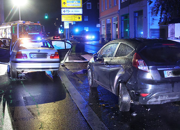 Zu einem Verkehrsunfall in Höhe eines Kosmetikgeschäfts auf der Vollmerhauser Straße in Gummersbach-Vollmerhausen kam es in der Nacht zu Sonntag. Gegen 4:30 Uhr war nach Angaben der Feuerwehr vor Ort ein BMW-Fahrer (73) gegen einen auf dem Seitenstreifen geparkten Wagen gefahren und anschließend noch gegen einen weiteren geparkten Ford geprallt. Wie die Polizei am Sonntagmittag mitteilte, hatte der Gummersbacher zuvor in einer Linkskurve in Richtung Ründeroth die Kontrolle über sein Fahrzeug verloren.