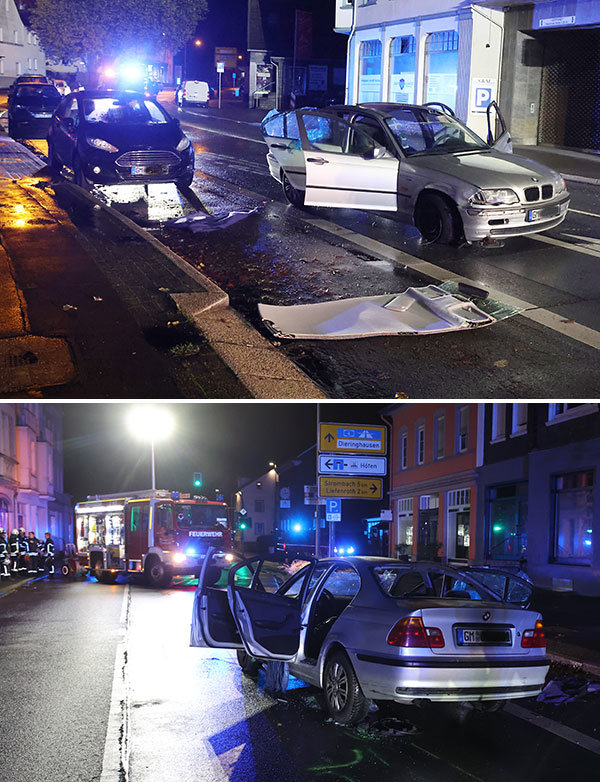 Ein vermeintlicher harmloser Unfall, der die Einsatzkräfte aber doch einige Zeit beschäftigen sollte. Aufgrund mehrerer Rücken-Operationen bei dem ansprechbaren Fahrer entschieden sich die Einsatzkräfte, den Mann, der sich nicht selbstständig befreien konnte, patientenschonend zu befreien. Hierfür wurde das Dach des Fahrzeugs mit einer Schnellbeilsäge innerhalb von 20 Minuten geöffnet. Der Senior wurde anschließend mit schweren Verletzungen in ein Krankenhaus gebracht.  Wie die Polizei mittlerweile ermittelte, war der Gummersbacher nicht im Besitz eines Führerscheins und hatte zudem Alkohol konsumiert. An den drei beteiligten Fahrzeugen entstand hoher Sachschaden, der BMW musste abgeschleppt werden.