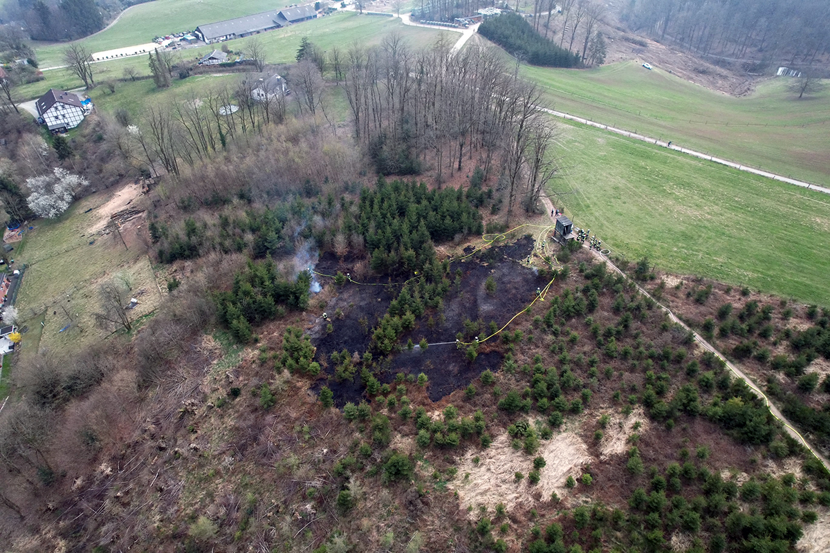Zwischen Jedinghagen und Dürholzen ist am Dienstagnachmittag ein kleiner Waldbrand ausgebrochen. Die Feuerwehr konnte eine Ausdehnung verhindern und hatte die Flammen, die auf einer Fläche von etwa 1.600 Quadratmetern wüteten, zügig unter Kontrolle.