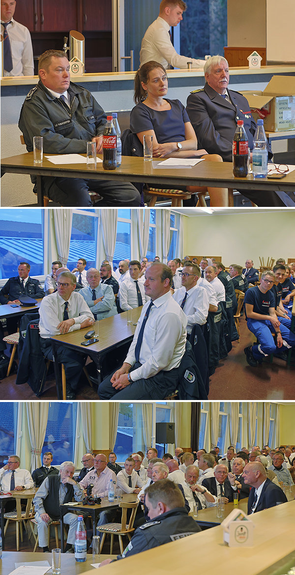 Während der Jahresdienstbesprechung zugegen waren auch Bürgermeisterin Larissa Weber und Kreisbrandmeister Wilfried Fischer, die Grußworte an die Anwesenden richteten.