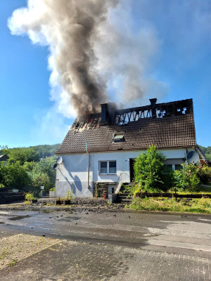 Lindlar - Über Stunden bekämpften mehr als 100 Kräfte ein Feuer in einem Wohnhaus an der Eibachstraße - Zwei Bewohner erlitten Verletzungen - Gebäude stark beschädigt (AKTUALISIERT).