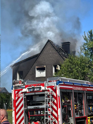 Bei einem Großbrand in der Lindlarer Ortschaft Scheel ist ein Wohnhaus stark beschädigt worden. Das Feuer war in der Küche im Dachgeschoss ausgebrochen, die dortige Wohnung wurde durch die Flammen zerstört. Im Erdgeschoss befindet sich eine Einliegerwohnung, die vom Löschwasser stark in Mitleidenschaft gezogen wurde und nach Angaben von Hans Peter Scheurer, Sprecher der Feuerwehr Lindlar, derzeit ebenfalls nicht bewohnbar ist. Mitarbeiter des Ordnungsamts kümmern sich um die vorübergehende Unterbringung der Betroffenen.