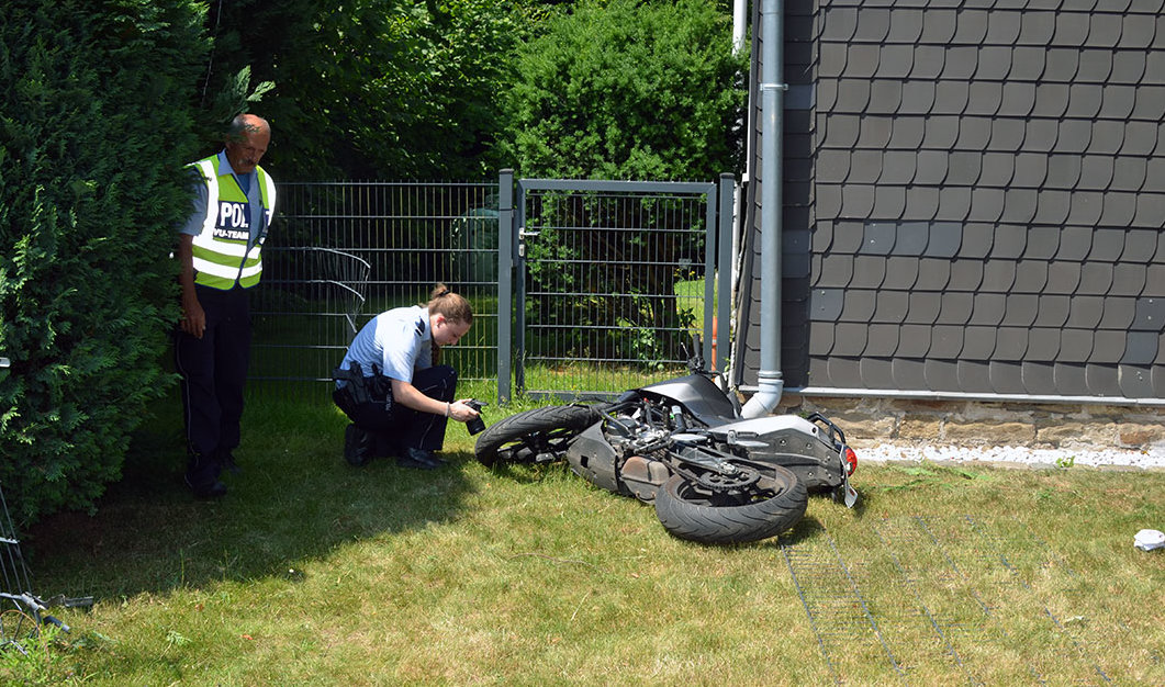 Die beiden Mädchen verletzten sich beim Aufprall auf einen Gartenzaun schwer. Sie wurden mit einem Rettungshubschrauber und einem Rettungswagen zur weiteren Behandlung in umliegende Krankenhäuser gebracht. Der 60-jährige Lindlarer erlitt einen Schock, blieb laut Polizei aber unverletzt. An dem Fahrzeug sowie dem Leichtkraftrad entstand erheblicher Schaden. Die Fahrzeuge waren nicht mehr fahrbereit und mussten abgeschleppt werden. Die Unfallstelle war bis etwa 15:30 Uhr für Dauer der Unfallaufnahme gesperrt.