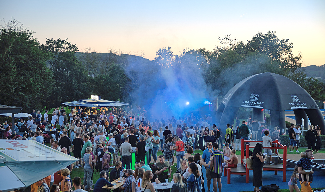 Im Freibad Engelskirchen feierten am Samstag über 1.800 Gäste bei bestem Sommerwetter und traumhafter Himmelskulisse zum 16. Moonlightschwimmen. Schon am frühen Abend waren die Parkplätze belegt und die Liege- und Sitzflächen rar. Bei Sonnenuntergang verzauberten Lichtinstallationen und ein beleuchtetes Schwimmbecken das Areal in eine außergewöhnliche Partylocation. DJ Chris ließ die Tanzfläche beben mit Partyklassikern und Charthits. „Es ist für uns immer das Highlight der Saison, wenn Jung und Alt friedlich zusammen feiern“, erzählte der Vorsitzende des Fördervereins Freibad Engelskirchen, Matthias Haas gegenüber Oberberg Aktuell.