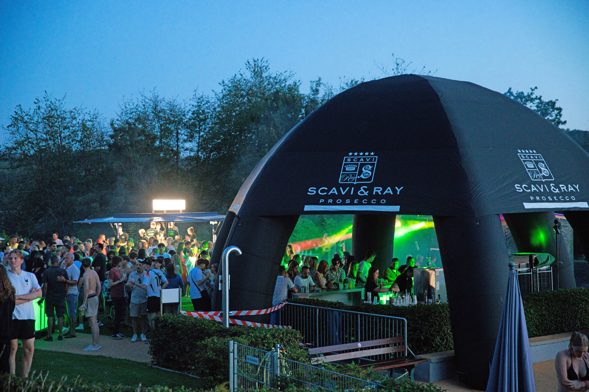 Doch am Samstag wurde erstmal fröhlich gefeiert bis in die Nacht hinein. Und wer wollte, konnte sich immer wieder im Schwimmbecken abkühlen. Cocktails, Getränke und Pommes und andere Snacks rundeten das feuchtfröhliche Spektakel ab. Im Verein arbeiten rund 60 ehrenamtliche Helferinnen und Helfer. Matthias Haas hob vor allem das Orga-Team mit Steffi, Petra und Anke hervor. „Sie sind seit Jahren eingespielt, ich kann ihnen nicht genug danken für ihren Einsatz“.