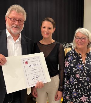 Eine weitere feste Säule des Ehrenamts ist Hans Mohr, der vom Schützen- und Bürgerverein der Orte Kaltenbach und Bellingroth, „Die Schimmelhäuer“, vorgeschlagen wurde. Seit über 25 Jahren engagiert er sich im Vorstand des Vereins. Zunächst als stellvertretender Vorsitzender und von 2001 bis 2018 als Vorsitzender. „Eigentlich wollten Sie kürzertreten, das hat ja geklappt“, scherzte Amelung. Denn nach seinem Rückzug aus der Beletage übernahm er sofort das Amt des Hallenwartes, welches er bis heute innehat. Zudem organisiert Mohr jährlich die Müllsammelaktionen in den Ortsteilen und hält Wanderwege sowie Sitzbänke rund um "seine" Ortschaften in Schuss.