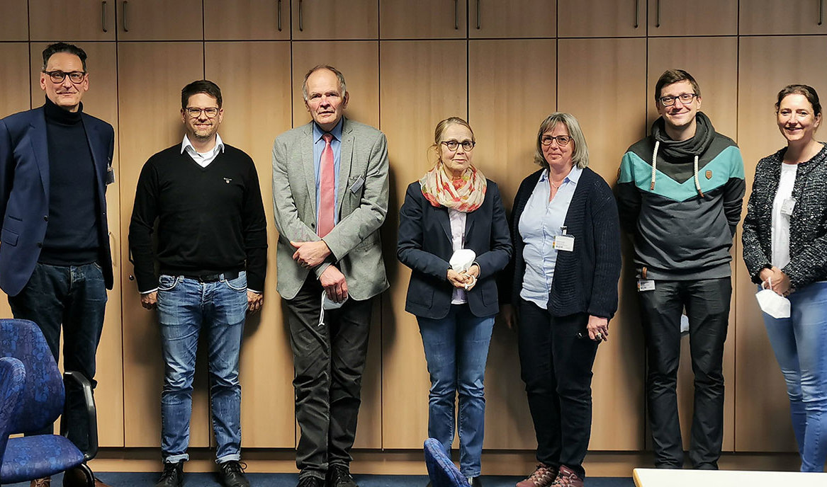 Foto: GFO Klinik Engelskirchen – St. Josef Krankenhaus --- Freuen sich über die erfolgreiche Zertifizierung (v.l.): Dr. Stefan Fabian, Dr. Holger Frackenpohl, Dr. Bernhard Egen, Eva Wihtol, Sabine Cassel, Alexander Becker und Isabell Römer.