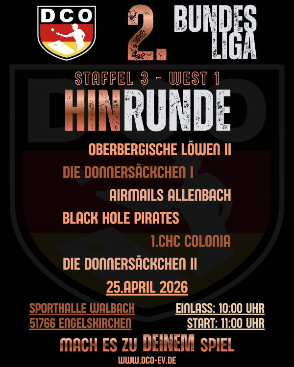 ENGELSKIRCHEN Heimspiel für die Oberbergischen Löwen II TEILEN Red; 21.04.2026, 21:06 Uhr Engelskirchen - Die 2. Cornhole-Bundesliga macht am Samstag in der Walbachhalle Station. WERBUNG