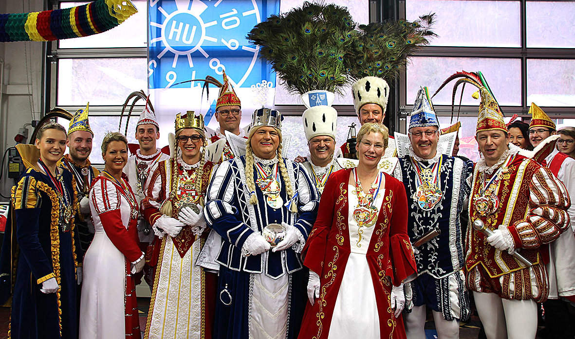Zur diesjährigen Jecken-Hauptuntersuchung beim TÜV-Rheinland traten in der Prüfstelle Loope das Dreigestirn der KG Närrische Oberberger Prinz Bernd I., Bauer Rainer und Jungfrau Steffi, Prinz Kuddel I. und Prinzessin Conny des RKV Ründeroth, Prinz Andy I., Bauer Ralf und Jungfrau Motzi des KV Bielstein, Prinz Philipp I. und Prinzessin Jasmina, der KG „Spaß am Karneval“ Overath sowie Prinz Matthes I. und Prinzessin Sarah vom Karnevalsverein Heiligenhaus an. Sie alle hatten das Ziel, sich auf ihre Sessions-Tauglichkeit prüfen zu lassen.