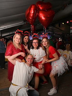 [Liebesgott Amor feierte heute neben Valentinstag auch seinen Geburtstag – 1.400 Jecke sangen später noch „Happy Birthday“.]