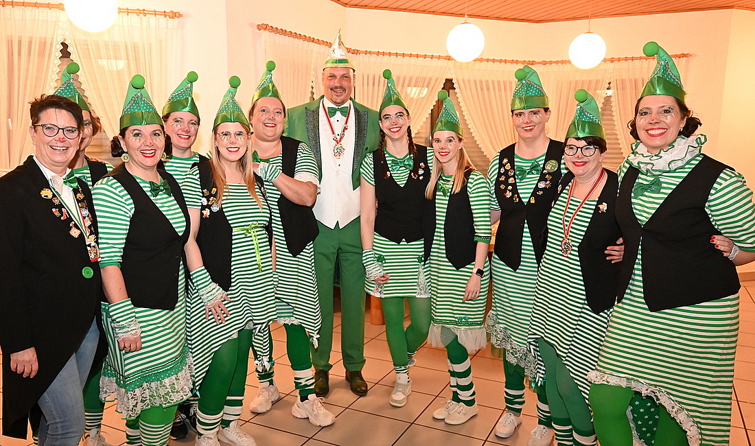„Unsere Mannschaft hat leider die Grippewelle überrollt“, berichtete Andre Krieger noch vor Beginn der Veranstaltung. Gleich mehrere Bedienungen und Helfer seien ausgefallen, was angesichts der bestehenden und flott flitzenden Mannschaft an diesem Abend aber kaum auffiel. Das Karnevalskomitee Leppestraße hatte für seine Gäste wieder einiges auf die Beine gestellt. Nachdem Sitzungspräsident Sven Scherer und sein aus Damen bestehender Elferrat Einzug gehalten hatte, forderte er zum Saal-TÜV auf. „Bitte kontrolliert das Kostüm des Nebenmannes und sind die Gläser auch voll? Ist die Stimmung beim Nebenmann gut? Dann können wir Vollzeit-Karnevalisten ja loslegen!“ Nach der Begrüßung, einem kleinen Seitenhieb auf die Politik, sowie dem Hinweis auf keinerlei Terminprobleme mit Sportveranstaltungen, dem Dank an die Crew und die reaktivierte Zeremonienmeisterin a.D. Heike Lipski, ging es ohne weitere Umschweife los.