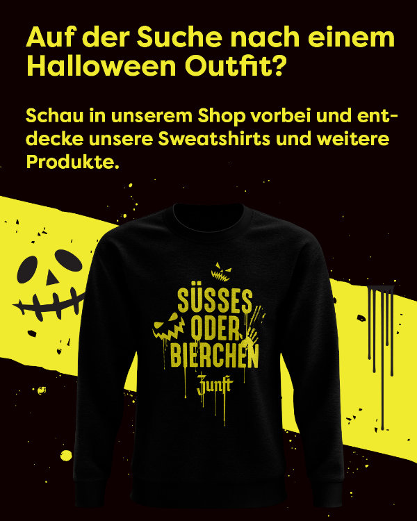 Dann holt euch jetzt den brandneuen ZUNFT Halloween Sweater „Süsses oder Bierchen“ – das Must-have für alle Zunft Kölsch-Fans mit Grusel-Faktor! Perfekt zum Vorglühen, Feiern oder einfach für den herbstlichen Alltag.