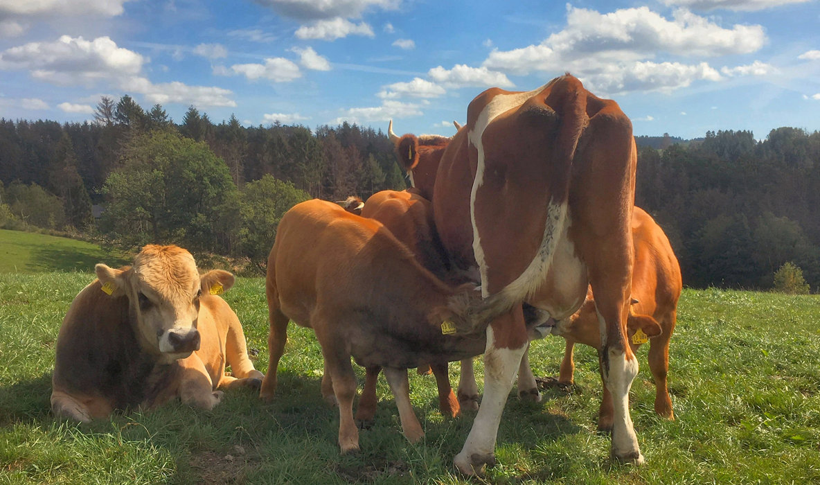 OA-Leser Gerd Koch beobachtete wie die drei Kälbchen von ihrer Mutter gefüttert worden sind.