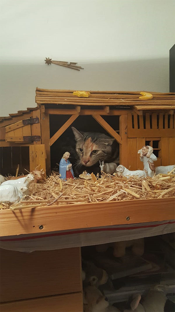 [Foto: Lydia Piechotta - Katze Heidi suchte auch im Stall der Weihnachtskrippe nach Mäusen.]