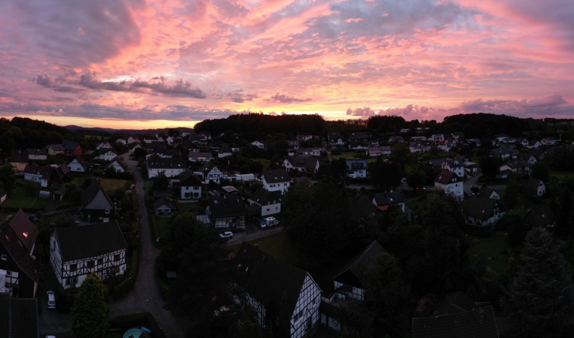 OA-Leser Kim Brosien hielt den Sonnenuntergang über dem Wiehler Ortsteil im Foto fest.