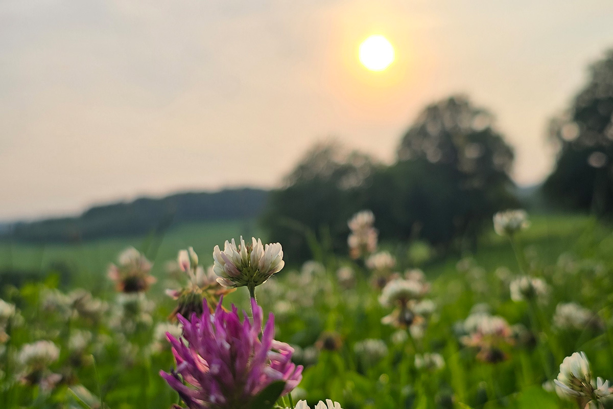 OA-Leserin Inna Reimer hielt den Sonnenuntergang samt Blumenwiese im Foto fest.