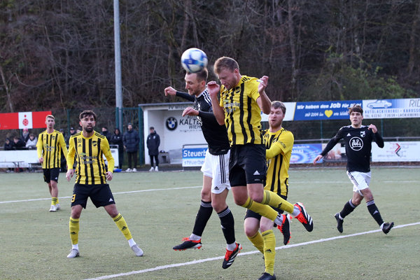 [Wiehls Bastian Schwarz gewinnt das Kopfballduell nach einer Spicher Ecke.]