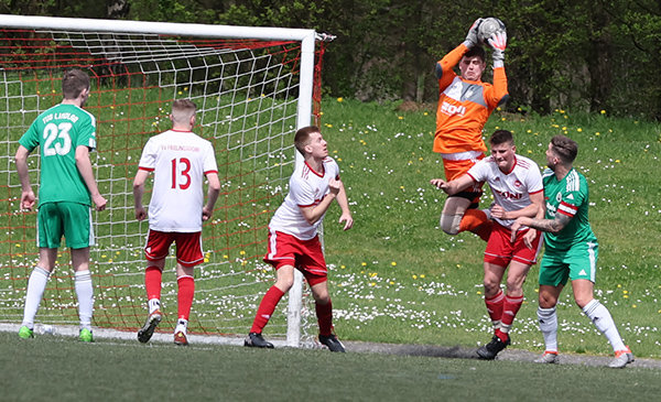 [SVF-Keeper Lukas Borkes fängt den Ball ab.]
