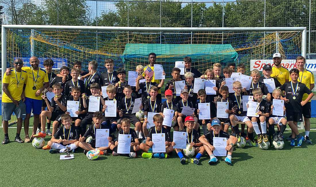 Abdoul Schwotzer-Conde lud zum Fußball-Feriencamp – und 50 Kinder trainierten auf dem Sportplatz des SSV Homburg-Nümbrecht mit. Unter der Leitung von insgesamt sieben Trainern lernten die Nachwuckskicker fünf Tage lang verschiedene Spiel- und Trainingsformen kennen. Zudem wurden drei Turniere (Mini-WM, Mini-EM und Mini-Champions League), deren Gewinner mit Pokalen ausgezeichnet wurden. Für alle Teilnehmer gab es am Ende Medaillen und Urkunden. Im Herbst wird dann wieder SSV-Altmeister Fredi Hennecken ein Fußballcamp in Nümbrecht ausrichten.