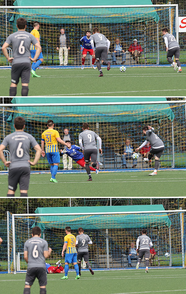 Rot gegen den Refrather Younes Badrous (78. absichtliches Handspiel auf der Torlinie).