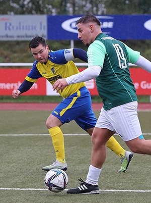 [Kenan Sarvan (re.) im Duell mit Nümbrechts Kapitän Marco Sträßer.]
