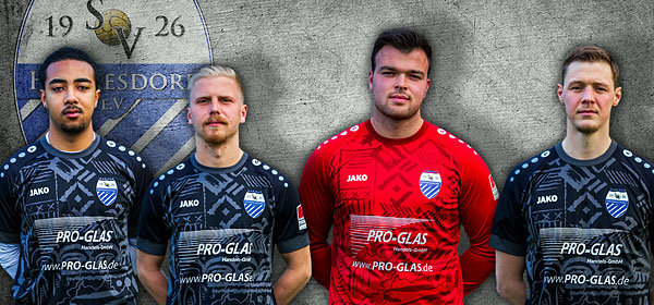 [Fotos SV Hermesdorf --- Die Neuzugänge Joel Juma (v.li.), Tomas Schreider, Noah Lang und Jonas Groß.]