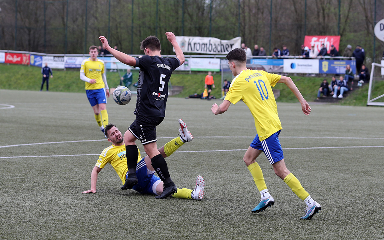 Im Verfolgerduell zwischen dem Tabellenfünften und dem Zweiten setzte sich Derschlag knapp durch. „Es war ein ausgeglichenes Spiel, in dem ein Punkt für uns verdient gewesen wäre“ ärgerte sich BV-Trainer Malte Klein. Sein Team machte es gegen die spielstarken Gäste tatsächlich lange Zeit gut, in der Schlussphase merkte man den Hausherren aber deutlich an, dass die Kraft ausging. Derschlag nutzte die Schwächephase und zog auf 3:1 davon, sodass der später Anschlusstreffer ohne Wirkung blieb. Matchwinner war Gabriel Werner, der alle Treffer der Borussia besorgte. „Am Ende wurde es zwar nochmal ein bisschen turbulent, aber aufgrund der zweiten Halbzeit geht der Sieg auf jeden Fall in Ordnung“, resümierte Derschlags sportlicher Leiter Bastian Metz die Partie.