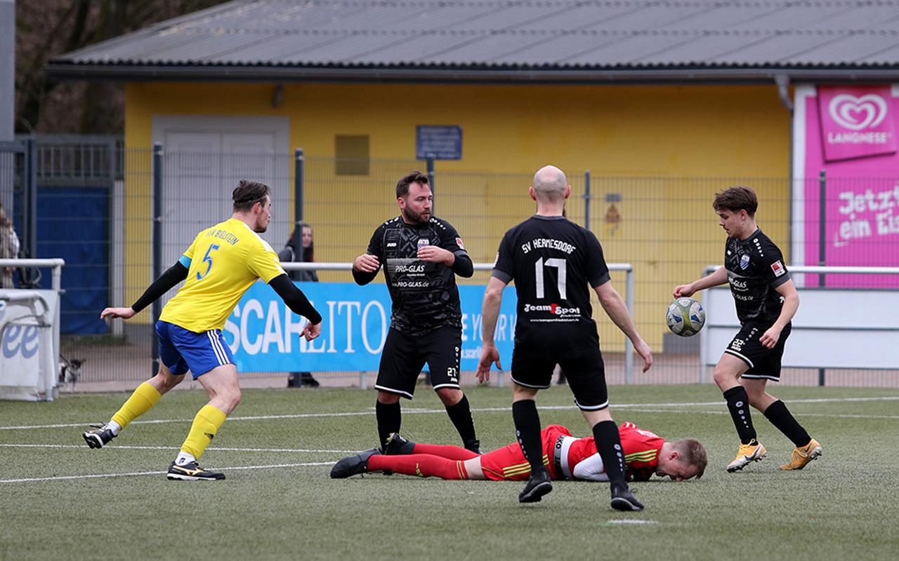 [Immer wieder brannte es im Hermesdorfer Strafraum.]