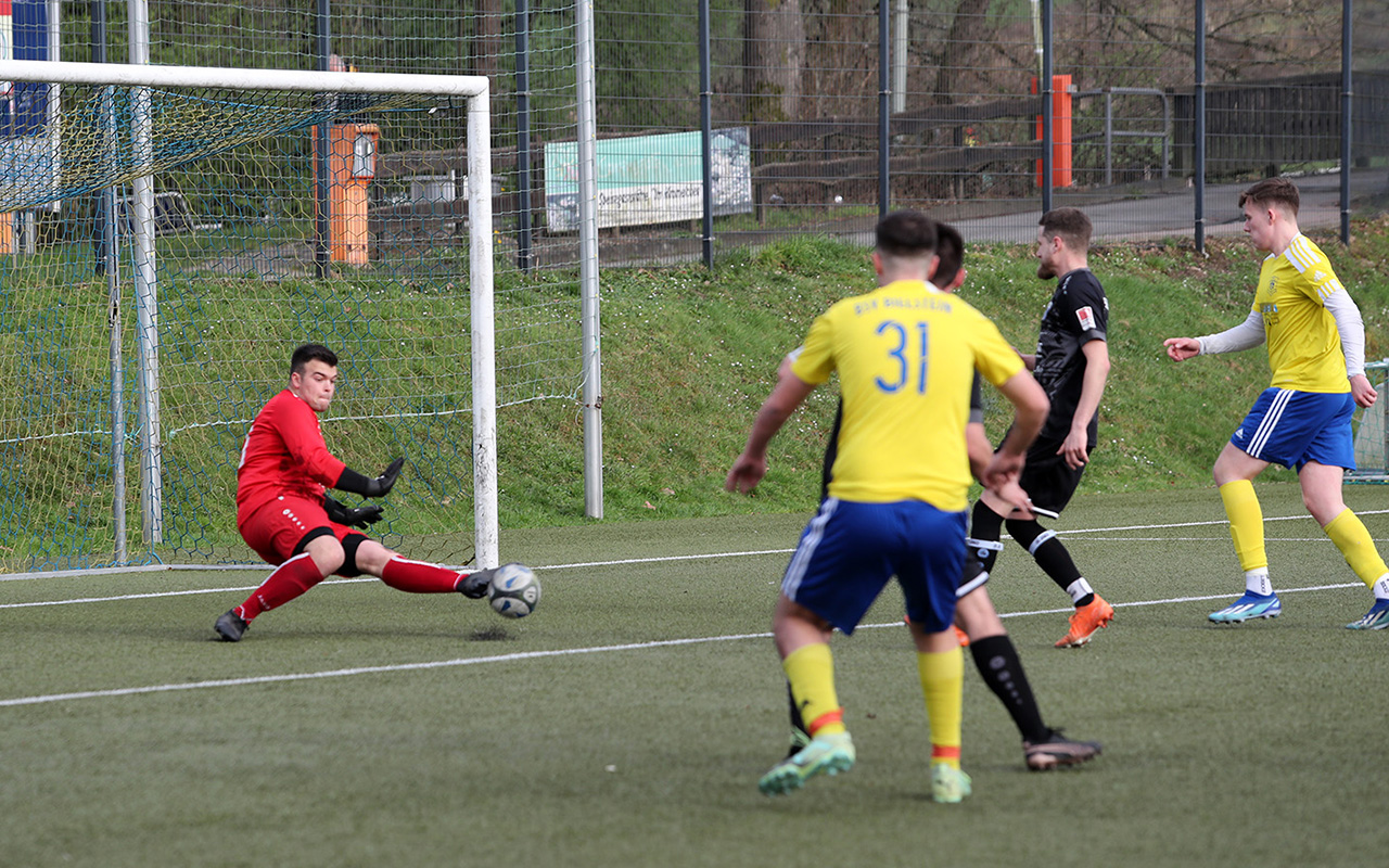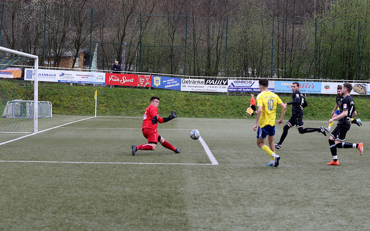 Lindlars Tobias Mibis scheitert mit einem Foulelfmeter an Keeper Gurur Özden (7.)