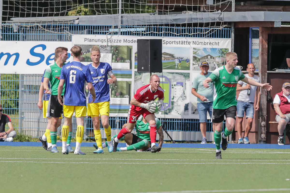 Die Gäste zogen zu Beginn ein hohes Pressing auf und es schien fast so, als sei Nümbrecht davon überrascht. Nachdem Philipp Klemp ans Außennetz gezielt hatte (2.), war die SSV-Abwehr auch drei Minuten später nicht im Bilde: Ein Lupfer von Gaspard Fehlinger über Tom Geßner hinweg landete am Pfosten, den Abpraller nutzte Patrick Reisenauer zum 0:1. Die Hausherren monierten vergeblich eine Abseitsposition.