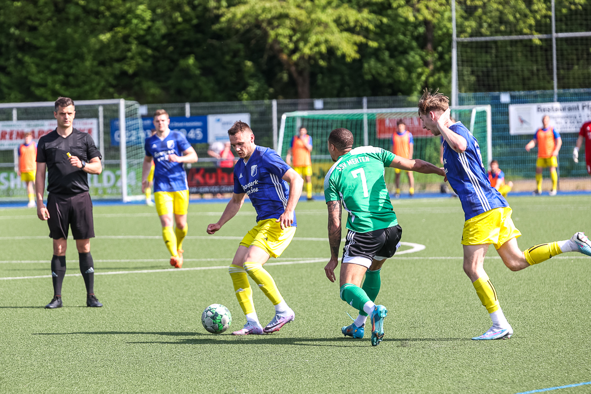 Auch in Durchgang zwei agierten die Mertener mit maximaler Cleverness und ließen sich nicht aus der Reserve locken. Einzige Ausnahme: Niklas Clemens schoss freistehend über das Gehäuse (56.). Die Elf von Bünyamin Kilic lauerte derweil auf Konter. Stephane Gresbrand hatte es in der 65. Minute noch versäumt, auf 0:2 zu stellen, doch in der Schlussphase, als die Nümbrechter alles auf eine Karte setzten, sorgten Moritz Moik und Fehlinger für die Entscheidung.