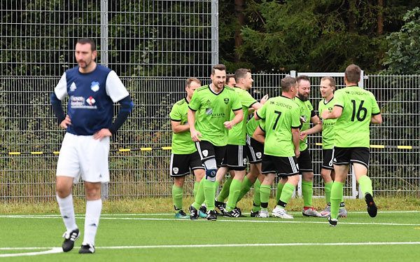 [Die Dürscheider bejubeln einen ihrer fünf Treffer.]