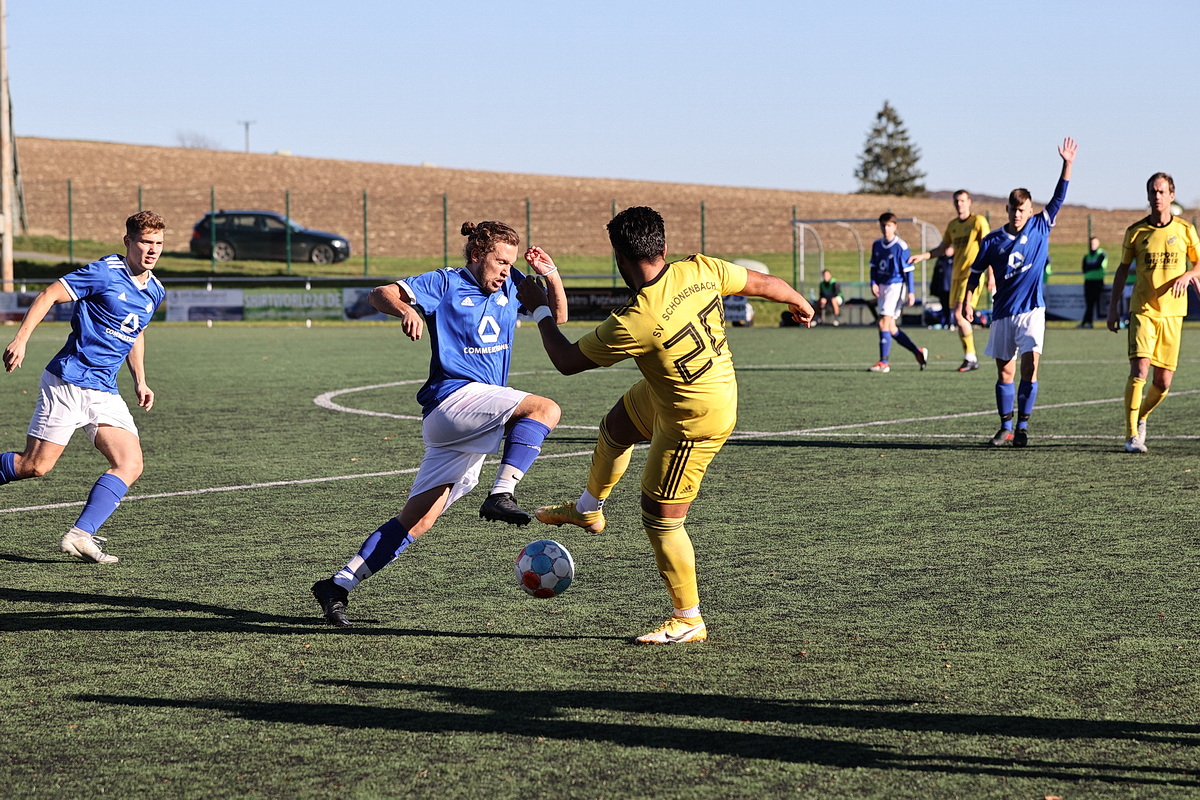 Der SV Schönenbach steht nach dem 10. Spieltag erstmals an der Tabellenspitze. Dem Titelanwärter reichte dazu eine eher mittelprächtige Leistung. „Das war ein ganz merkwürdiges Spiel“, wusste Schönenbachs Trainer Michael Reed die Begegnung nicht richtig in Worte zu fassen. „Wir waren überhaupt nicht präsent und haben viele lange Bälle gespielt.“ In der Auftaktphase scheiterten die „Blues“ gleich dreifach an SVS-Keeper Lukas Hoffmann. „Da fehlte uns eben ein echter Knipser in der Spitze“, musste Refraths Trainer Jürgen Glomb auf seinen bislang treffsichersten Torschützen Tim Weiss verzichten.