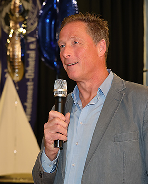 [Der Vorsitzende des Stadtsportverbandes, Detlef Kämmerer, hatte ein paar Präsente mitgebracht.]