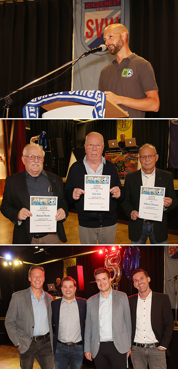 Lehnen begrüßte neben aktiven Fußballern und Unterstützern auch eine Reihe ehemaliger Trainer, Spieler und diverse Ehrengäste. Zu diesen zählten unter anderem Vertreter der lokalen Politik und des Fußballkreises Berg, dessen Vorsitzender Jürgen Liehn ebenfalls vor Ort war. Zum Abschluss ehrte Lehnen die Jubilare, darunter einige Gründungsmitglieder des SVW.