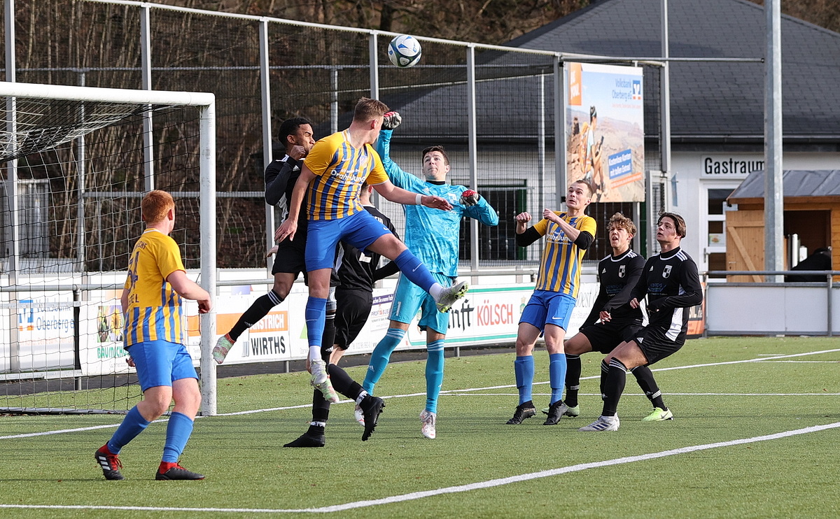 In einer intensiven Partie nahm Untereschbach einen Punkt mit nach Hause, wodurch der Favorit aus Bergisch Gladbach auf Tabellenrang drei abrutschte. Bereits nach zwölf Minuten hatte TuS-Offensivmann Maurice Müller einen Doppelpack auf dem Konto und veredelte somit den guten Start der Gäste. Coach Ansgar König war mit dem Stellungsspiel seiner Truppe sehr zufrieden: "Wir standen gut und haben den Kampf angenommen. Mit dem Punkt können wir sicherlich gut leben, auch wenn vielleicht sogar mehr drin gewesen wäre.“ Quasi mit dem Halbzeitpfiff erzielte Niklas Weyer den wichtigen Anschlusstreffer für die Gastgeber. "Nach der erschreckenden ersten Halbzeit haben wir uns wieder gefangen und Chancen kreiert. Wir sind immer weiter angelaufen, für den Sieg hat es aber nicht gereicht“, meinte Co-Trainer Matthias Gawlik. Christopher Kovacs besorgte gegen seinen Ex-Klub das 2:2.