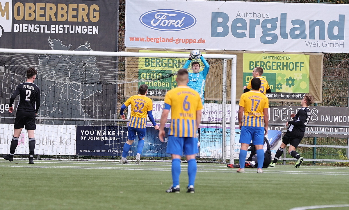 Wipperfürths Torhüter Marvin Briem hält einen Foulelfmeter von Hüttes Sinan Özge (84.).