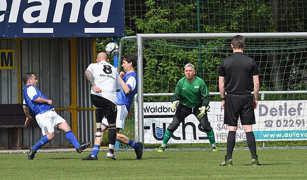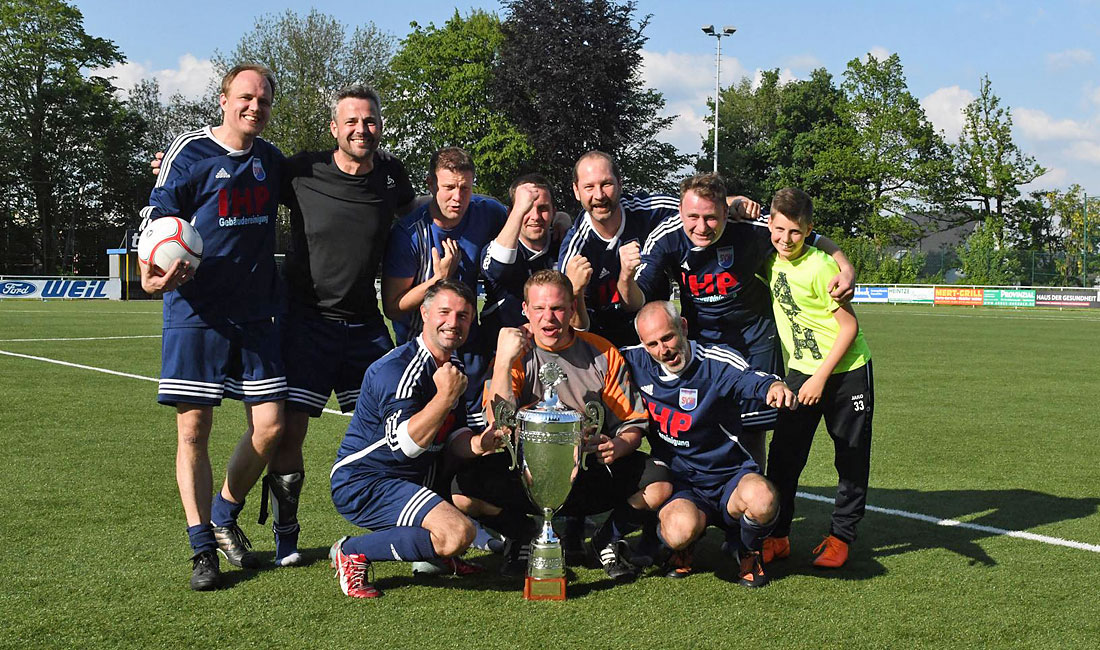 So zogen der TuS Reichshof, das Gastgeberteam und neben dem späteren Sieger FC Wiedenest-Othetal noch Titelverteidiger SG Hermesdorf/Schönenbach in die letzte K.o.-Runde ein. Nach einem spannenden Endspiel mit Feldvorteilen für die Waldbröl zeigte sich der FC Wiedenest-Othetal vom Punkt aus als die beständigste Mannschaft und gewann somit auch das dritte Neunmeterschießen in Folge. Im Finale versenkten Jürgen Ressel und Matthias Bockemühl ihre Schüsse sicher und der Jubel kannte keine Grenzen. „Europapokal, Europapokal…“, schmetterten die Sieger schallend im Chor über die Anlage.