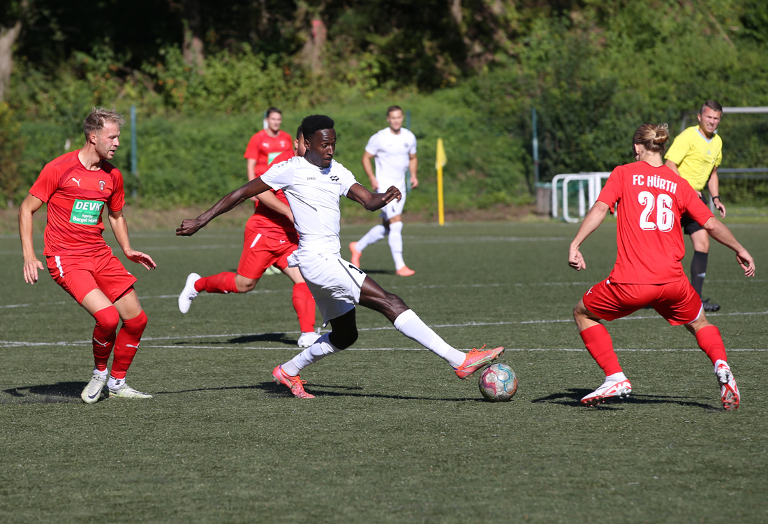 Nach den frühen Toren verflachte die Partie ein wenig, Mike Owusu verzeichnete noch einen Abschluss vom Sechzehnereck, der jedoch deutlich über die Querlatte flog, ehe auch der Gast zum Zuge kam. Ein schneller Vorstoß erreichte Hürths Yousef Keshta, dessen Schuss aber von Hohkeppels Torwart Kevin Jackmuth sicher pariert wurde (37.). Die frühzeitige Entscheidung folgte kurz vor der Pause und fiel viel zu einfach: Enzo Wirtz war auf die rechte Außenbahn ausgewichen und kam dort nahezu unbedrängt zur Flanke auf Ömer Tokac, der, ebenfalls nur wenig unter Bedrängnis, per Kopf zum 3:0 einnetzte (44.).