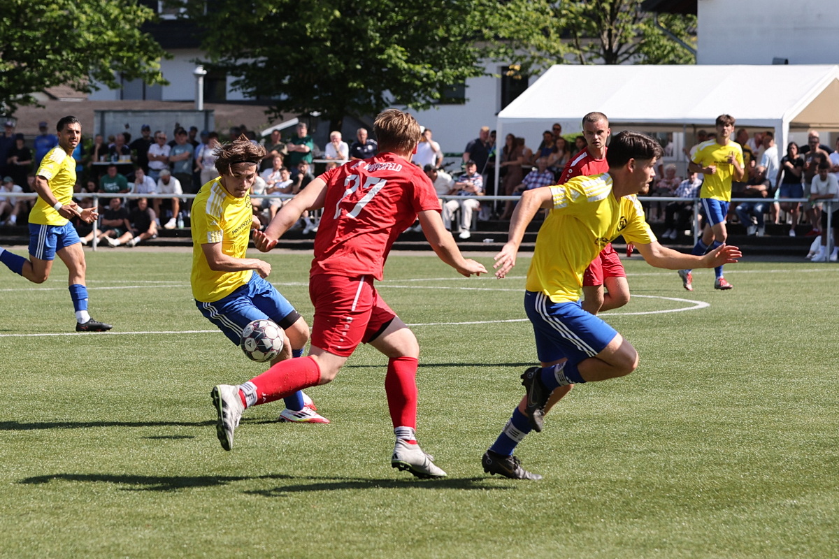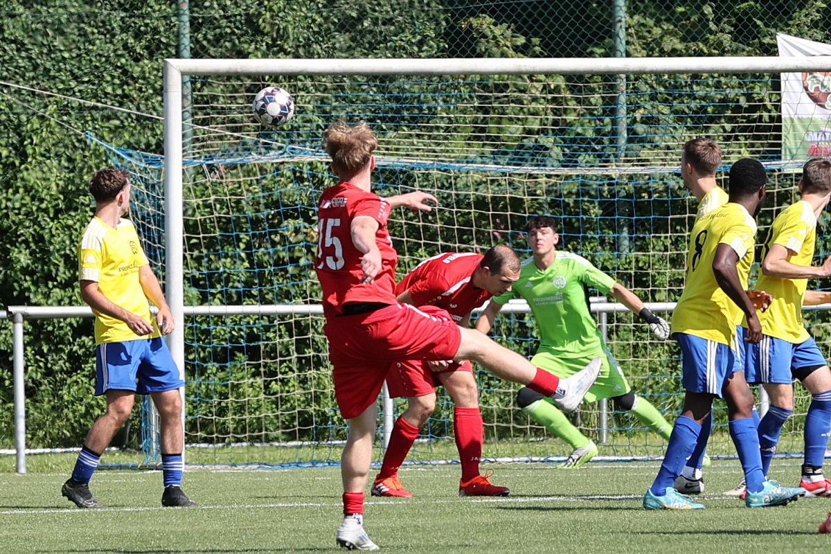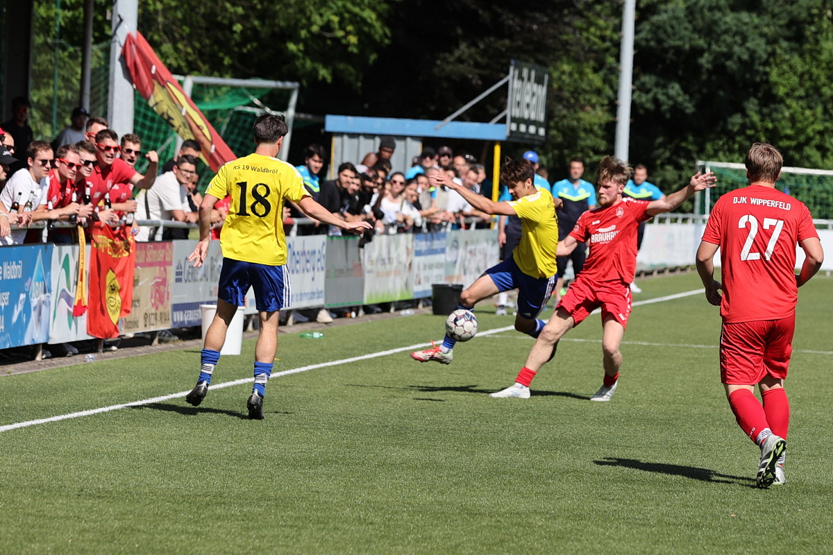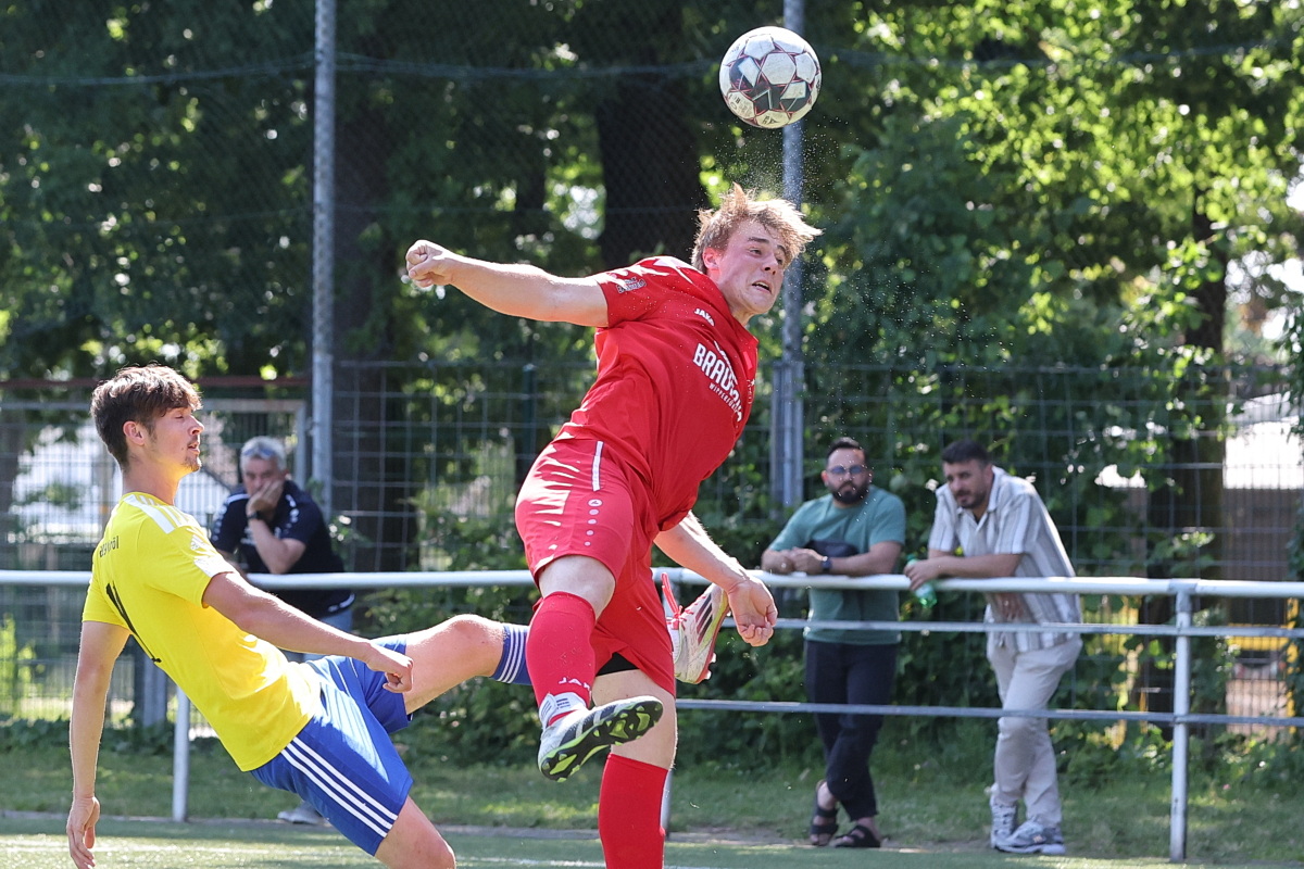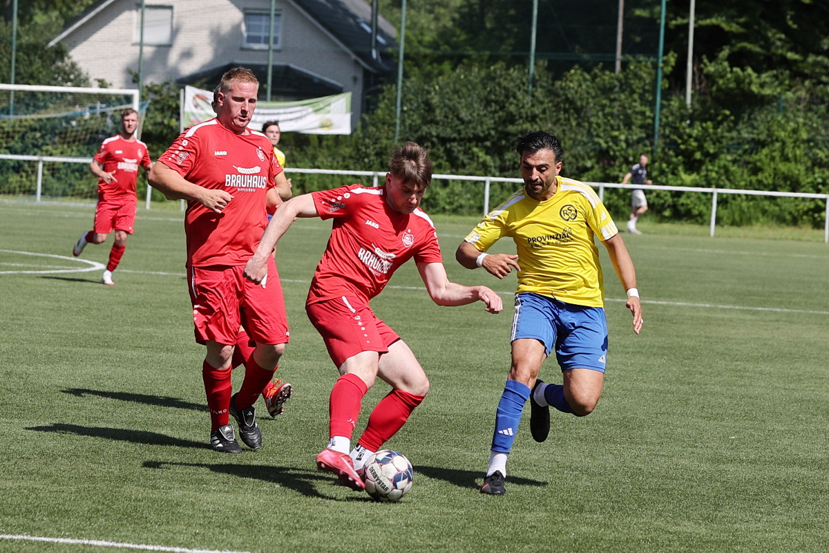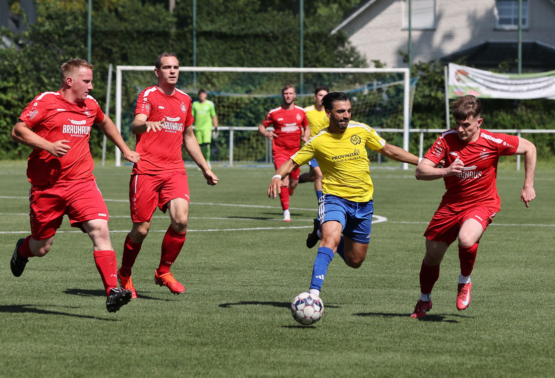 Im Duell der Kreisliga B-Vizemeister hieß die Devise – wie nicht anders zu erwarten war – „Safety First“. Bei brütender Hitze neutralisierten sich beide Teams, wobei die Hausherren den angriffslustigeren Eindruck hinterließen, ohne indes wirklich gefährlich werden. Erst nach einer Trinkpause wurde es in den Strafräumen interessant. Die erste nennenswerte Gelegenheit besaß Wipperfeld: Nach einer Flanke von Patrick Philipp kam Robert Hembach frei zum Kopfball, setzte die Kugel jedoch vorbei (29.).