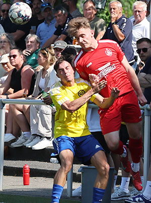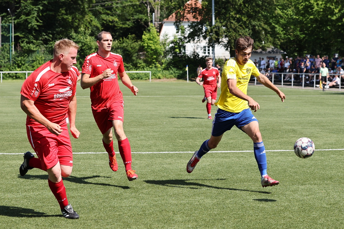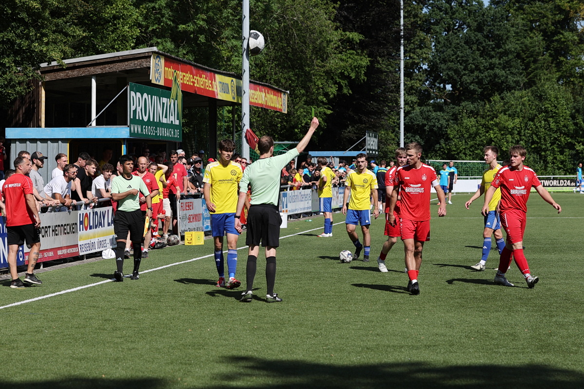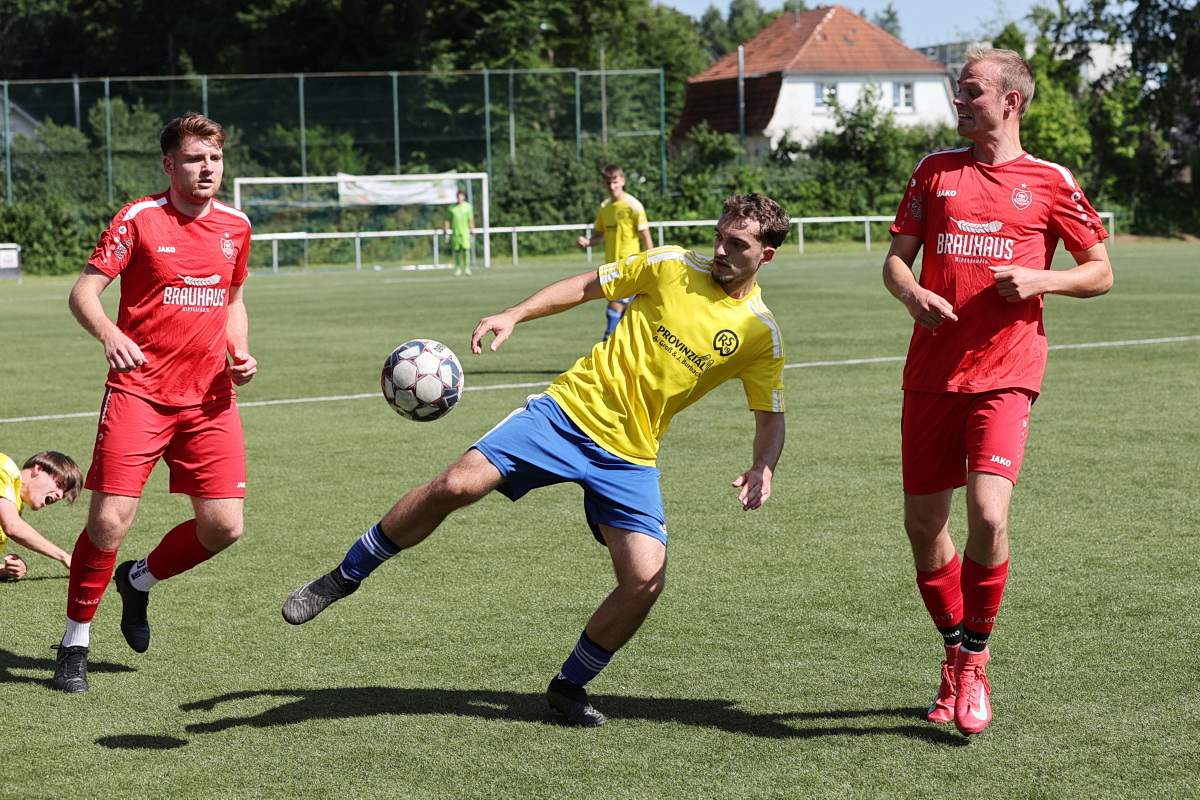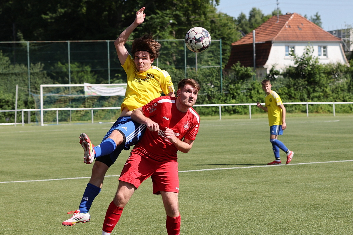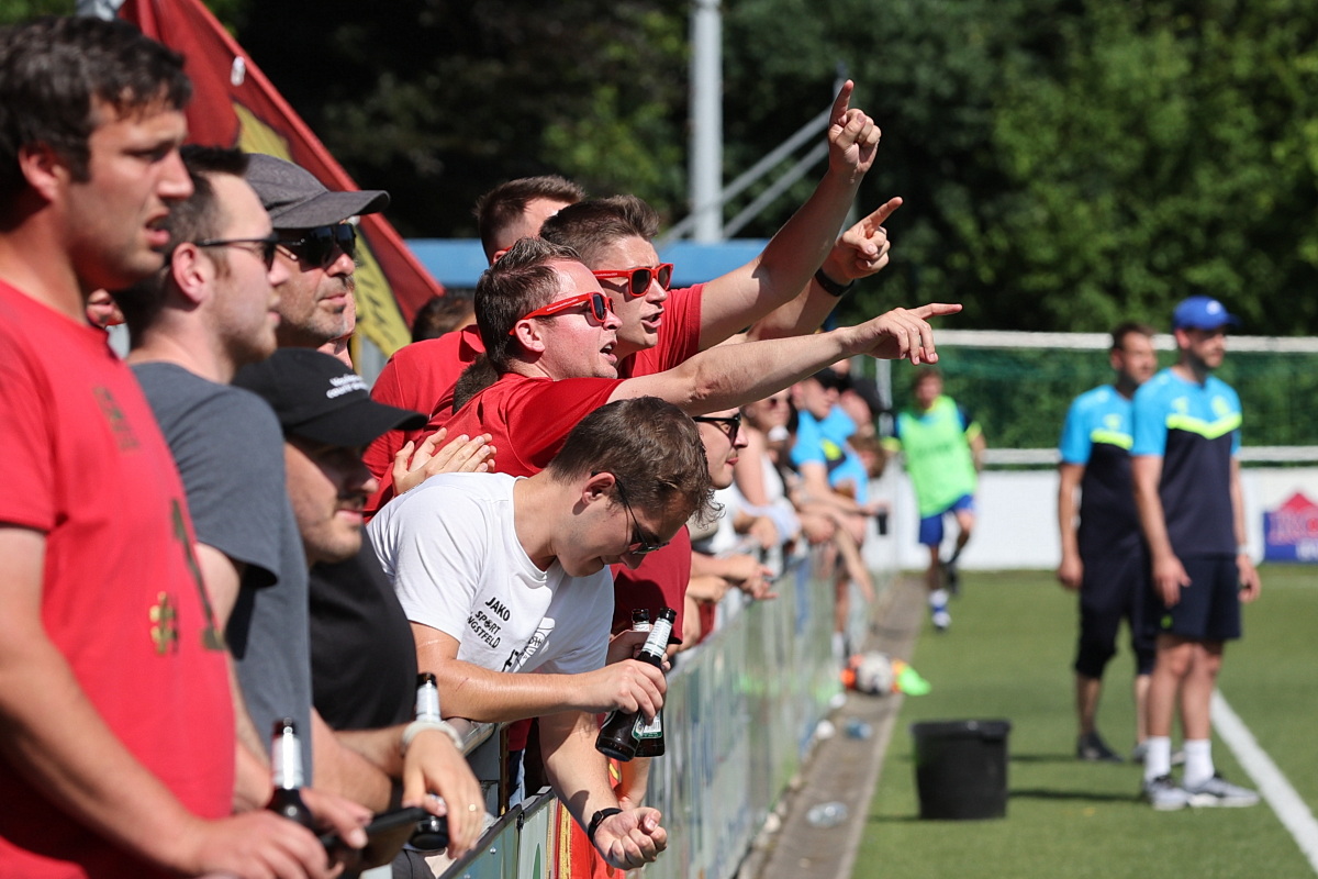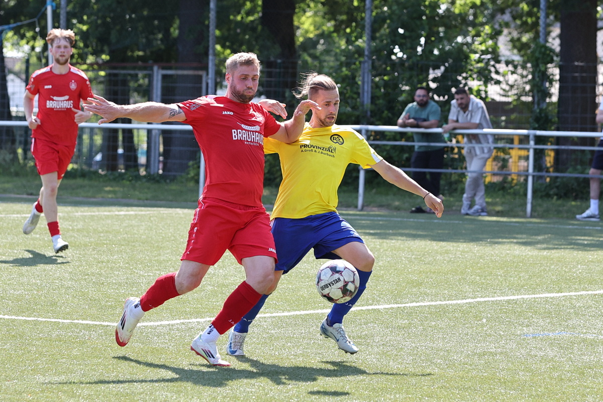 Im Duell der Kreisliga B-Vizemeister hieß die Devise – wie nicht anders zu erwarten war – „Safety First“. Bei brütender Hitze neutralisierten sich beide Teams, wobei die Hausherren den angriffslustigeren Eindruck hinterließen, ohne indes wirklich gefährlich werden. Erst nach einer Trinkpause wurde es in den Strafräumen interessant. Die erste nennenswerte Gelegenheit besaß Wipperfeld: Nach einer Flanke von Patrick Philipp kam Robert Hembach frei zum Kopfball, setzte die Kugel jedoch vorbei (29.).