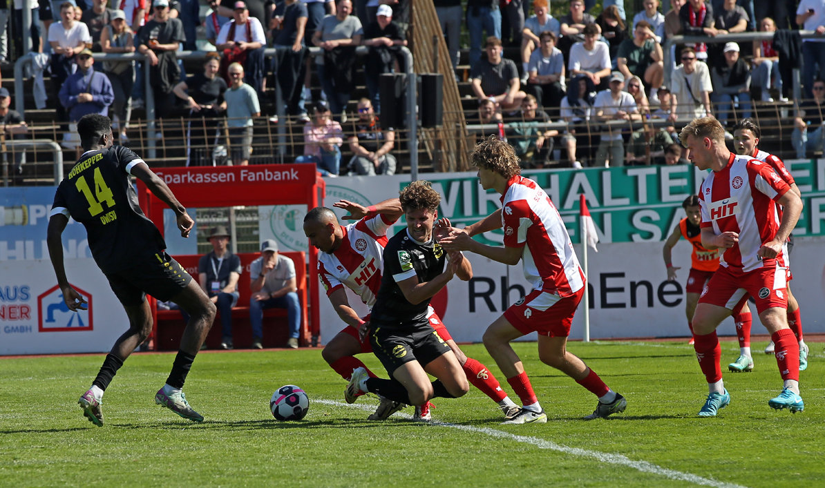 Der ist derweil, ohne Hohkeppeler Beitrag, näher gerückt. Mit dem Punktabzug von neun Zählern, wegen der Eröffnung eines Insolvenzverfahrens, ist der 1. FC Düren zurück im Abstiegsstrudel. Beim jüngsten Aufeinandertreffen mit dem MSV Duisburg, das 0:6 endete, deutete sich zudem an, dass die mit Beteiligung eines Fußball-Influencers zusammengestellte Castingtruppe der Dürener in der Liga wohl nicht konkurrenzfähig ist. Hinzu kommt, dass der FCD nur noch vier Spiele im Restprogramm hat, darunter gegen die Topteams aus Lotte, Gütersloh und Oberhausen. Kaum vorstellbar, dass die Dürener dort noch viele Punkte sammeln.