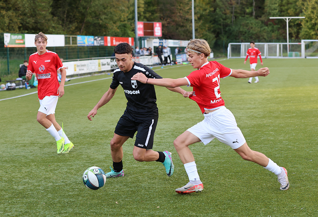 Beim Wiedersehen mit Germania Zündorf feierte die Wiehler U14 ihren zweiten Saisonerfolg, nachdem sie bereits das Hinspiel gewonnen hatte. Damit geht die Mannschaft von Ralf Hoffmann mit sieben Zählern in die vierwöchige Herbstpause – eine solide Zwischenbilanz. „Die Tendenz zeigt nach oben“, erklärte der Trainer, der zunächst mitansehen musste, wie seine Schützlinge in Rückstand gerieten, doch David Kedziora und Artyom Ohanyan mit einem Doppelpack drehten den Spieß bis zum Halbzeitpfiff um.