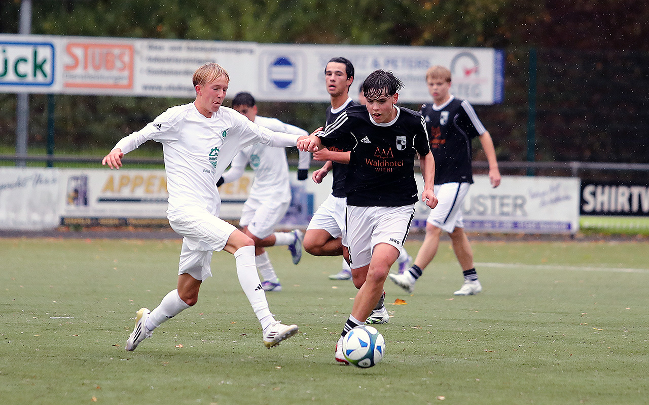 Aggressiv pressend setzte der Gast die Wiehler unter Druck. „Wir haben sehr gut dagegengehalten und dann auch spielerische Akzente gesetzt. Der Gegner wurde dann nur noch über lange Bälle gefährlich, die wir gut wegverteidigt haben“, war Bollow zufrieden, die Auftaktoffensive der Borussia überstanden zu haben.