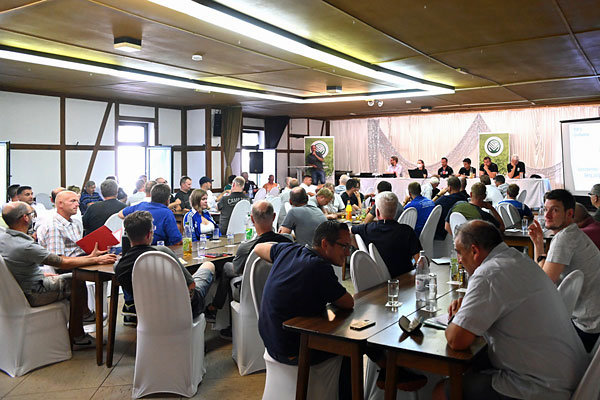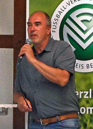 Insgesamt 59 Vereinsvertreter konnte der neue Vorsitzende des Jugendausschusses, Thomas Engelberth, bei der Jugendleitersitzung in Vilkerath begrüßen. Jürgen Liehn, Vorsitzender des Fußballkreises Berg und Vor-Vorgänger Engelberths, überbrachte Grußworte des Hauptvorstandes und rief die Anwesenden noch einmal auf, Vereinsmitglieder unter 30 Jahren zu melden und für den Ehrenamtspreis vorzuschlagen.