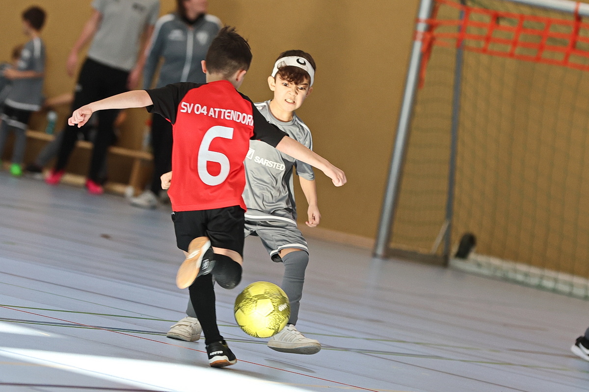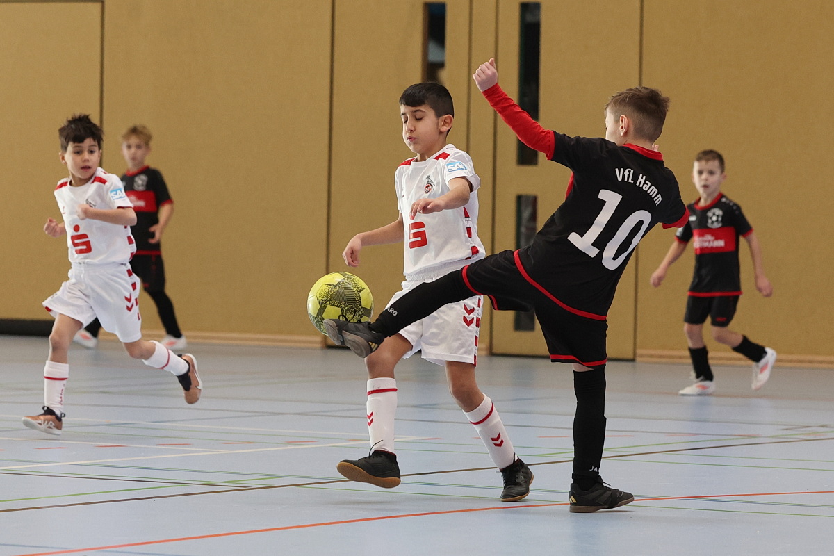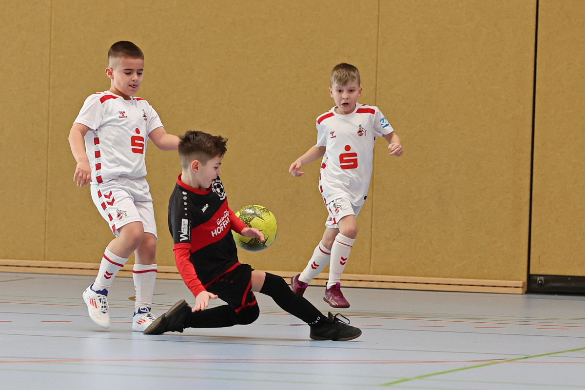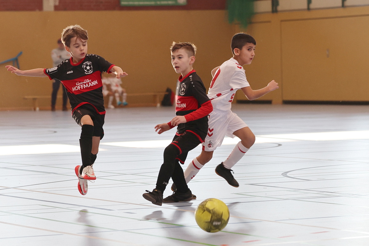 Den Anfang beim Hallenmasters machten die ganz Kleinen. 19 Bambini-Teams trugen ihre Partien auf drei Kleinspielfeldern aus und hatten hierbei jede Menge Spaß. Beim folgenden U8-Wettkampf setzte sich erwartungsgemäß der Favorit durch. Ohne auch nur ein einziges Gegentor zu kassieren, belegte der Nachwuchs des 1. FC Köln souverän den Spitzenplatz und verwies den SV Eitorf und den VfL Hamm auf die Plätze zwei und drei.