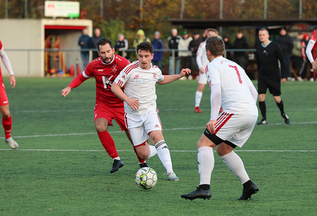 „Glück gehabt“, schnaufte Nümbrechts Trainer Burkhardt Graeve nach einem Stück Schwerstarbeit gegen den Tabellenletzten durch. „Das war ein dreckiger Sieg.“ Die Gäste aus Refrath spielten über 90 Minuten lang munter mit. Til Steinmetz rettete den Hausherren mit einem Doppelpack den dreifachen Punktgewinn. Für Refrath traf Tim Kurth. Einem möglichen Punktgewinn, oder sogar mehr, stand bei den Versuchen von Felix Resch (Pfosten) und Christian Budimbu (Latte) das Aluminium im Weg. „Wir haben es leider nie geschafft, Ruhe ins Spiel zu bringen. Viele Dinge waren einfach nur schlecht. Daher hätte Refrath auch einen Punkt verdient“, so Graeve. Das Lob nahm SVR-Coach Martin Kwozcala zwar gerne entgegen, lieber hätte er aber wenigstens einen Zähler mit auf die Heimreise genommen. „Wir haben ein gutes Spiel gemacht“, entdeckte er nur wenig Fehlerquellen im Spiel seiner Mannschaft. „Leider läuft es aber im Moment einfach schlecht.“
