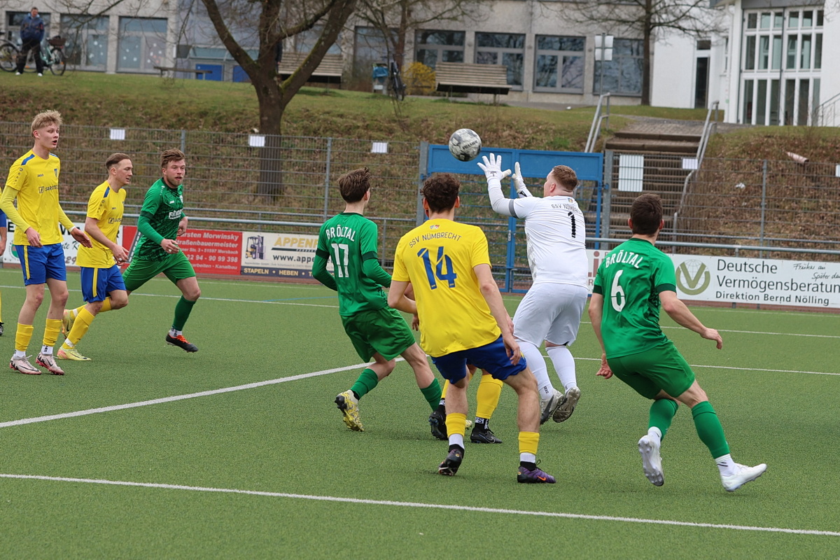 Es war ein typisches Gemeindederby. Spielerische Elemente fehlten beim Kräftemessen der Nümbrechter Reserve und THB zwar nicht gänzlich, aber hauptsächlich war Kampf Trumpf. „Vor allen Dingen die zweite Halbzeit war sehr zerfahren und es kam kaum Spielfluss auf. Das war nur ganz wenig Spielkultur“, fasste SSV-Coach Burkhard Greave die 90 Minuten zusammen. Insgesamt dürften ihm allerdings die fehlenden spielerischen Komponenten schlichtweg egal gewesen sein. Denn sein Team sammelte wichtige Zähler im Kampf um den Klassenerhalt. Nils Rohlender hatte nach einer knappen Viertelstunde für die Gäste vorgelegt, ehe zwei Leihgaben aus dem Landesligakader der Hausherren die Partie drehten.