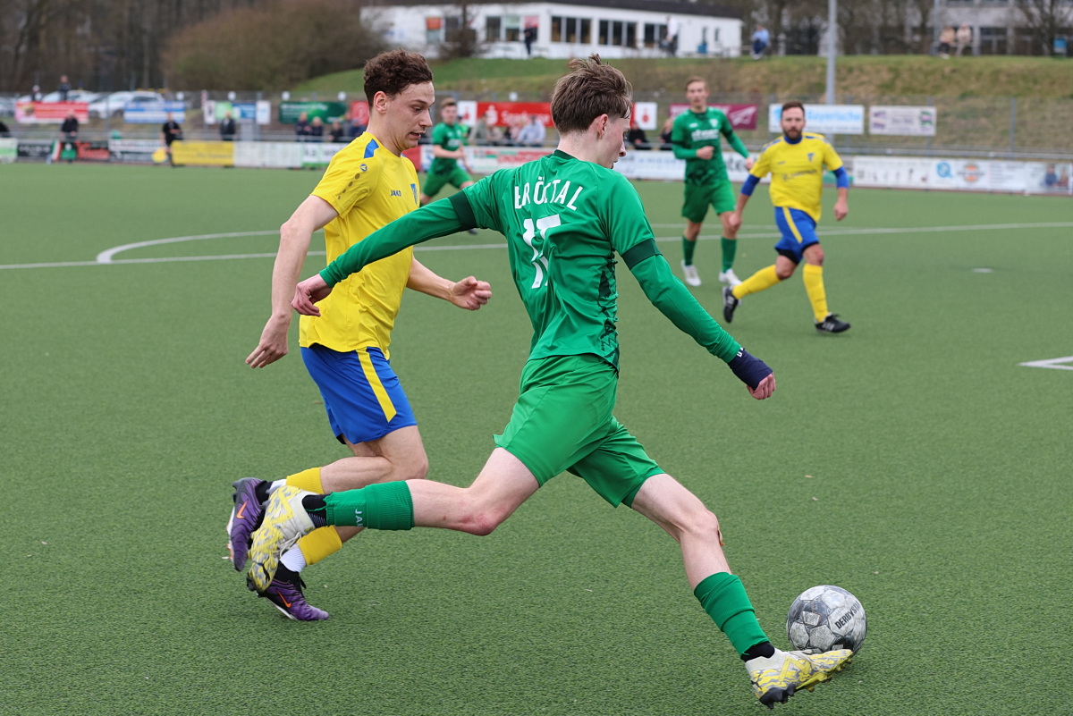 Mit Bergneustadt (6) und Rösrath (7) trafen die beiden Remiskönige der Liga aufeinander – und trennten sich, wie sollte es anders sein, mit einem Unentschieden. „Das war ein gewonnener Punkt“, fasste Bergneustadts Trainer Marcel Walker die Begegnung zusammen. Während seine Mannschaft üblicherweise ihr spielerisches Potenzial zu präsentieren weiß, war davon wenig zu sehen. Aber der SSV packte andere Qualitäten aus. „Meine Mannschaft hat heute richtig gut gekämpft und dagegengehalten“, lobte Walker derweil den Auftritt des Gegners. „Rösrath hat schon eine tolle Qualität und mächtig Dampf gemacht.“ Die Gastgeber waren durch Fabian Schilling in Führung gegangen, Tom David sorgte für den Ausgleich. „Ich bin eigentlich super zufrieden. Die Mannschaft hat einen richtig guten Auftritt abgeliefert“, ärgerte sich Gästecoach Sascha Brandenburg indes über die „dramatisch fahrlässige“ Chancenverwertung.